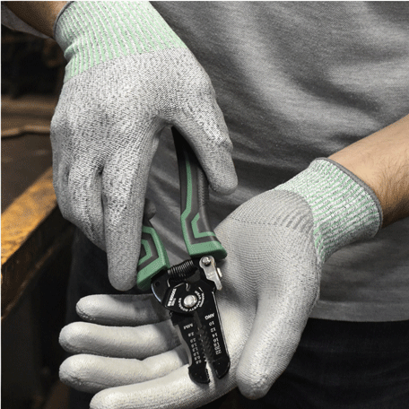 The NS-10658 features a seamless shell composed of 13-gauge HPPE and is free of fiberglass and steel, providing comprehensive level A2 cut protection. Its polyurethane palm coating effectively safeguards against abrasion and punctures, while also guaranteeing a firm grip in both dry and wet conditions.