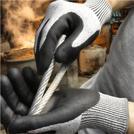 - 13-gauge Microfoam Nitrile palm coated cut resistant gloves