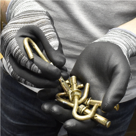 - 13-gauge Microfiam Nitrile palm coated general purpose gloves.