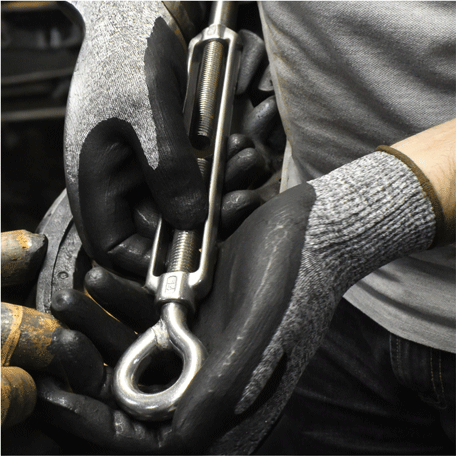 - 15-gauge Foam Nitrile palm coated multi-purpose gloves.